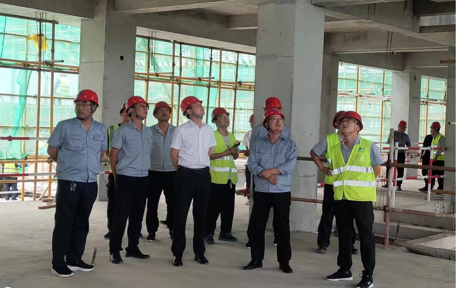 2022年6月20日,在天酬建筑分公司的统一协调下,工程管理室、技术室及四季花园三期项目部主要管理人员赴永寿恒大中学项目部进行学习交流。