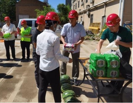 慰问中,蒙晓记询问了一线职工生活、工作等情况,叮嘱职工在保证工作质量和进度的前提下要注意身体,做好高温防暑工作,并代表集团公司送上了西瓜、牛奶、绿豆等防暑降温品,为烈日炎炎下依然坚守在项目施工一线的职工送来丝丝清凉和浓浓关怀。