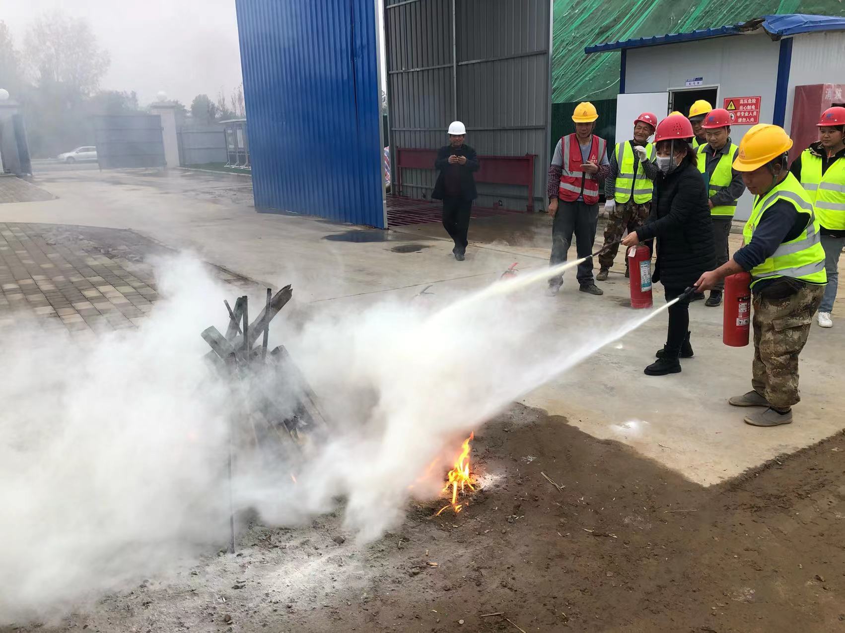 项目安全员对消防安全基本知识进行了普及,对消防设施使用进行了讲解说明。随后,对干粉灭火器使用方法进行实操示范。