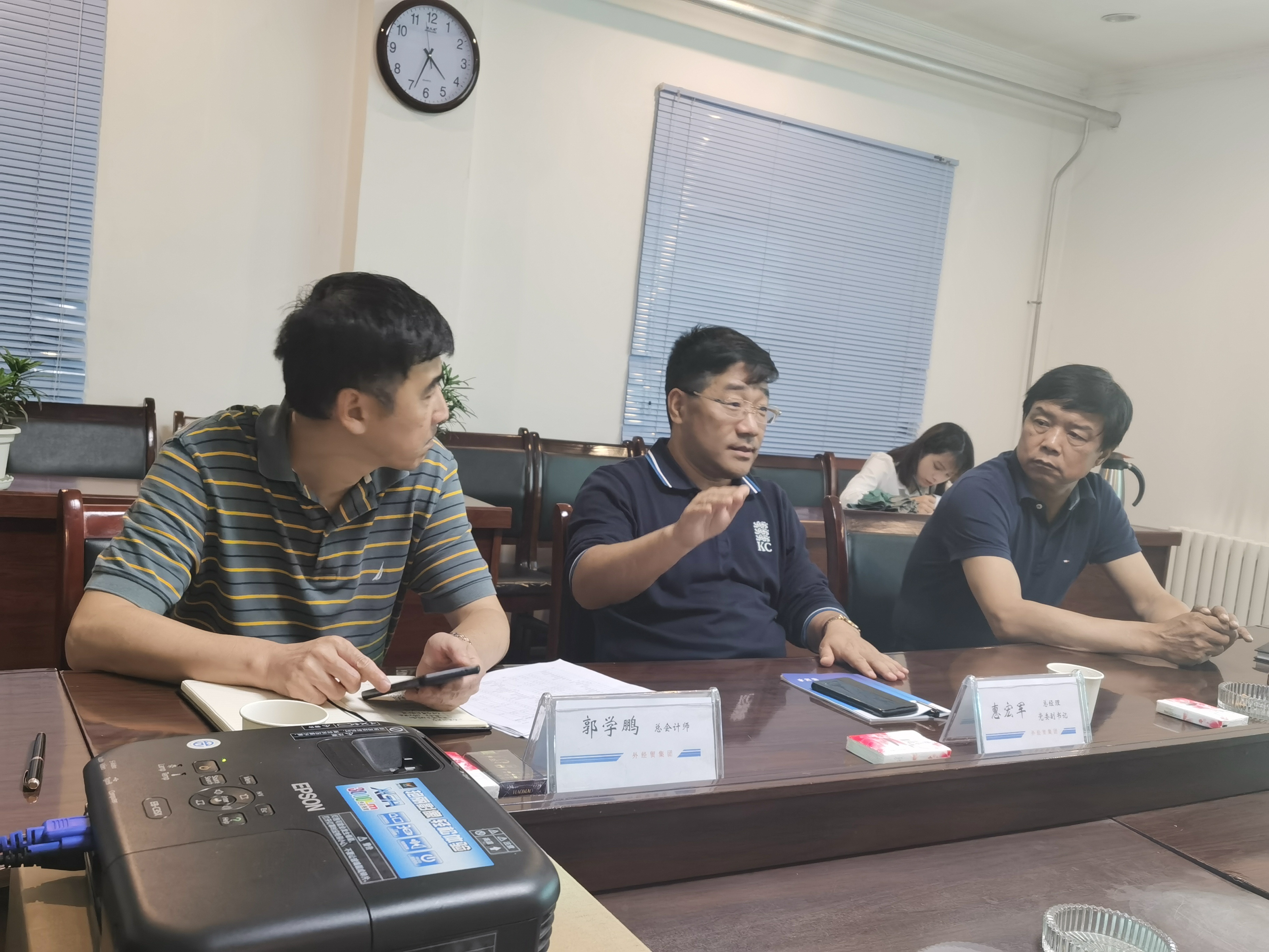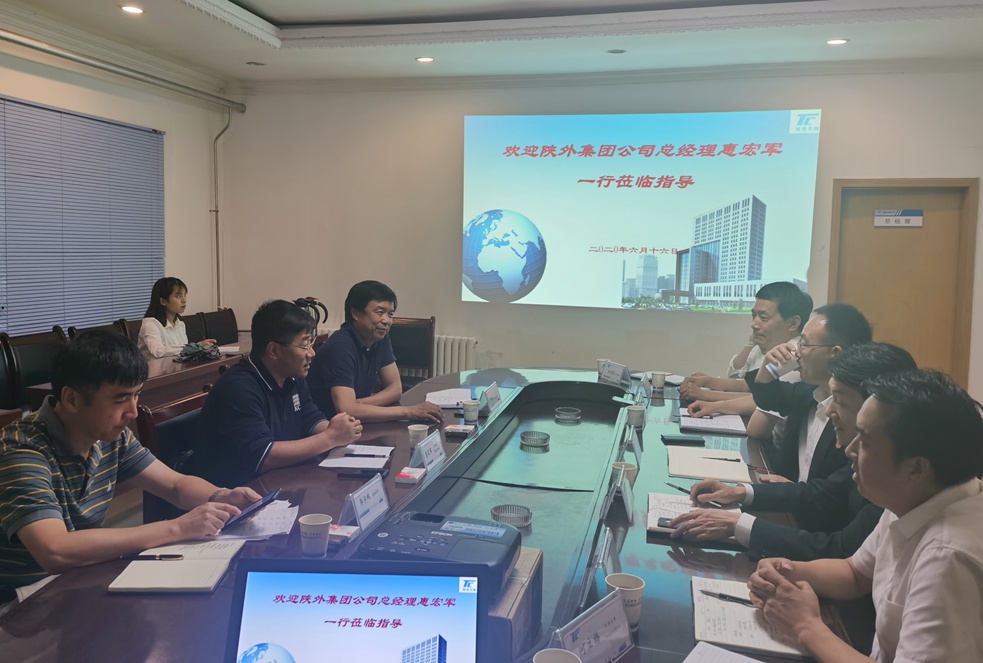 6月16日下午,陕外经贸集团公司总经理、党委副书记惠宏军,党委委员、董事、天酬公司董事长丁永忠,总会计师郭学鹏一行莅临天酬检查指导工作。天酬公司总经理李满星主持会议,公司经理班子成员及相关负责人参加了会议。