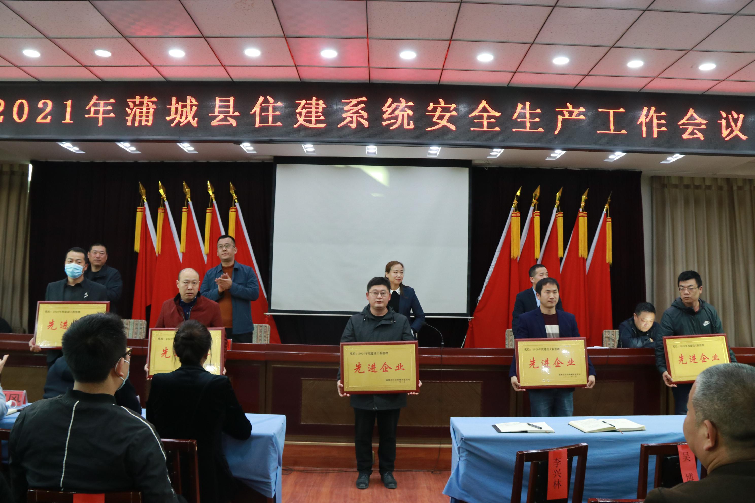 2021年3月23日上午9点,蒲城县住建部门组织召开2021年住建系统安全生产会议,发布了关于表彰2020年度建筑工程、燃气供热先进企业的决定,陕西天酬路桥建筑工程有限责任公司蒲城四季花城项目部获得“2020年度建设工程管理先进企业”荣誉称号。