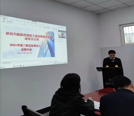 陈肖锋对路桥分公司2021年度主要经营指标完成情况进行简述,并对考核流程作简要介绍。三位二级目标责任人从2021年主要工作完成情况、存在的问题、2022年工作计划和目标责任书对标等方面进行述职述廉。