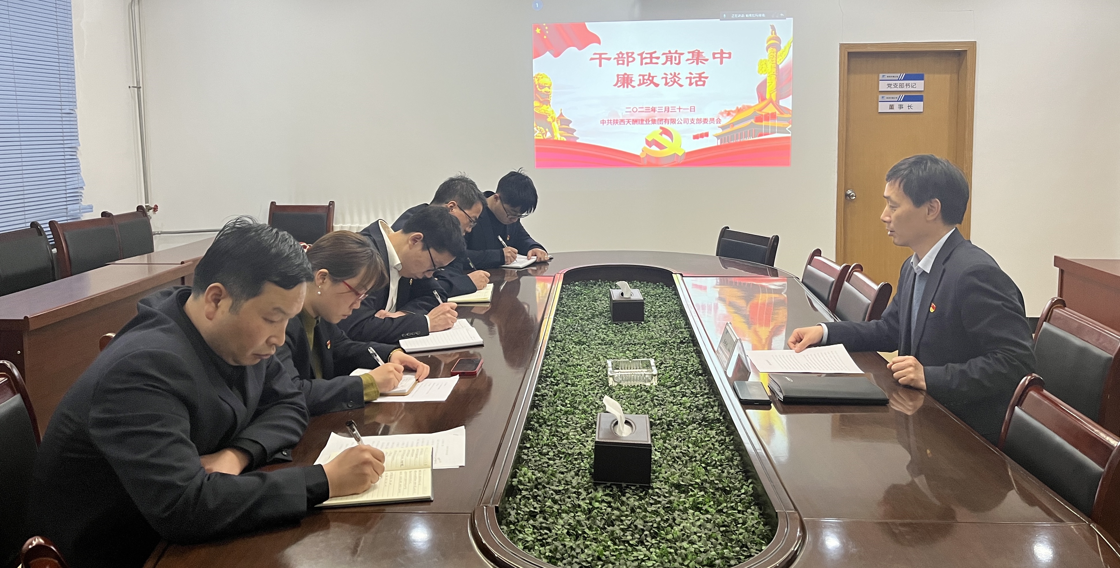 为全面贯彻落实党风廉政建设责任制,进一步加强对新任职干部廉政教育,2023年3月31日,天酬公司通过线上与线下相结合的方式,开展新提拔干部任前集体廉政谈话。纪检委员、副总经理王根利主持。