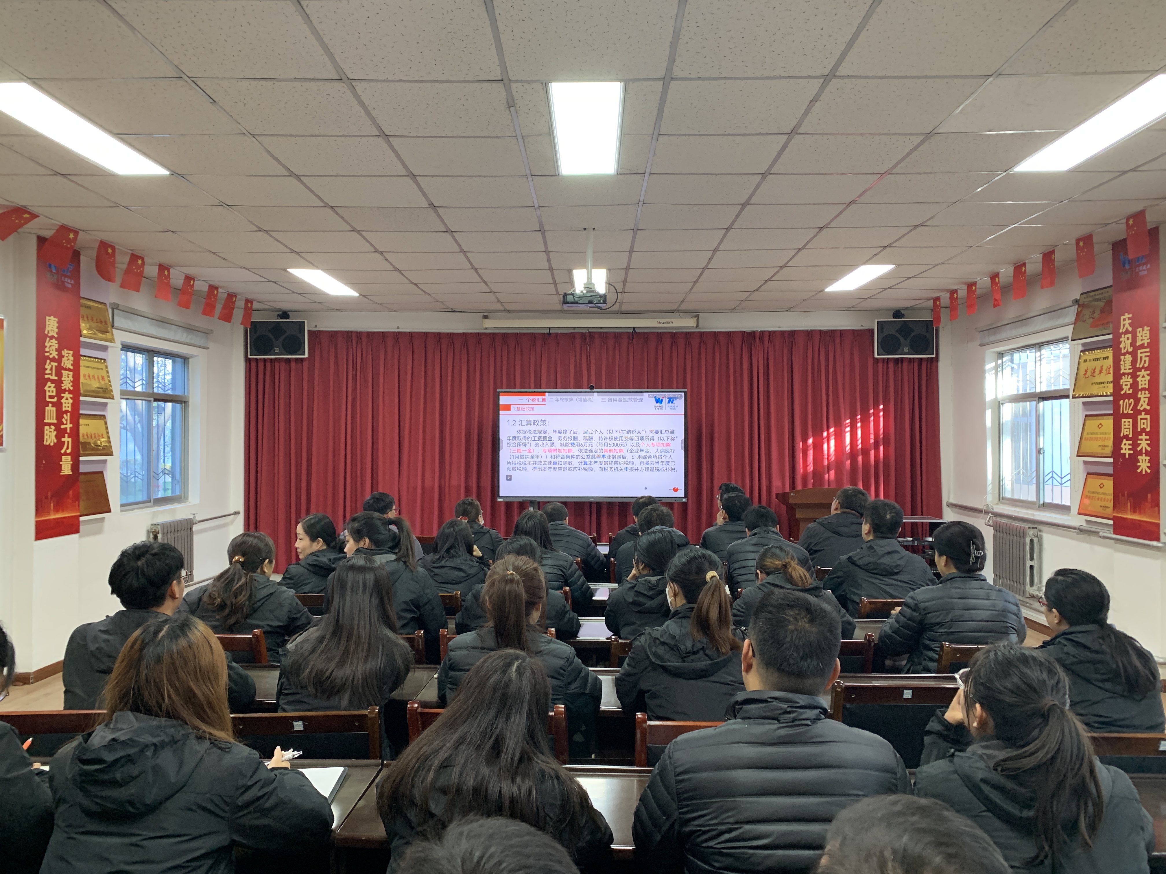为了加强公司职工个税汇算清缴水平,提高年终各项目利润核算能力,11月17日,陕外集团天酬建业公司计划财务部开展个税汇算、年终项目核算(增值税)及备用金规范登记培训。计划财务部副部长周仕成主讲,各单位负责人、项目经理、核算员等40余人参加。