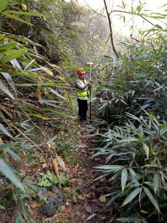 图2技术人员在进行加密点数据采集 图3技术人员对加密点进行埋设 项目部技术人员没有被眼前的困难所吓倒,山上没有路,就用砍刀开出一条路,仪器没有信号,就把基站架设在山顶。经过半个多月的艰难工作,终于在11月5日完成了加密控制点的工作。