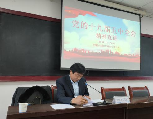 为深入学习贯彻党的十九届五中全会精神,推动全会精神落实,12月3日下午,陕外经贸集团第五宣讲组在天酬公司召开党的十九届五中全会精神宣讲会。本次会议由集团党委委员、董事,天酬公司董事长丁永忠及集团党委宣传部、群工部部长张斌宣讲,天酬公司经理班子成员、全体党员、团员青年及业务骨干等50余人参加了本次会议,会议由天酬公司党支部书记、副总经理汪虹主持。