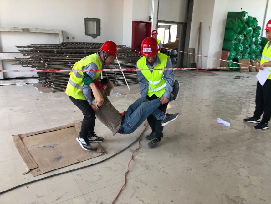为提高现场作业人员的安全用电意识,掌握触电应急救援技能,落实2020年安全生产月“消除事故隐患,筑牢安全防线”主题活动,天酬建筑分公司煤化项目部结合自身特点,于2020年6月18日下午开展了防触电应急救援演练活动。