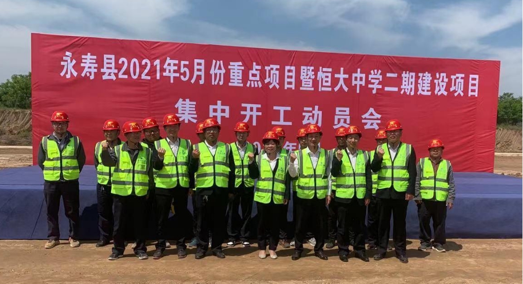2021年5月18日上午,碧空万里,槐花飘香,永寿县监军镇建设工地上热闹非凡。永寿县2021年5月份重点项目暨恒大中学二期建设项目开工仪式在施工现场隆重举行。咸阳市市委常委、副市长曹汉平,永寿县县委书记苏晓梅,县人大常委会主任张怀星,县政协主席燕志平,县委副书记张乔,县委常委、常务副县长樊莉霞等出席了此次开工仪式。