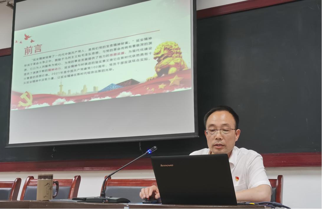 本次党史学习教育专题党课由党支部书记李满星主讲。李书记以“延安精神,永放光芒”为题,详细讲述了什么是延安精神,延安精神的丰富内涵以及延安精神对党员领导干部、青年职工的启示。课上,通过讲述与观看视频相结合的方式,大家了解了党在延安的十三年革命经历,深刻体会到了延安精神在新时代的伟大意义。