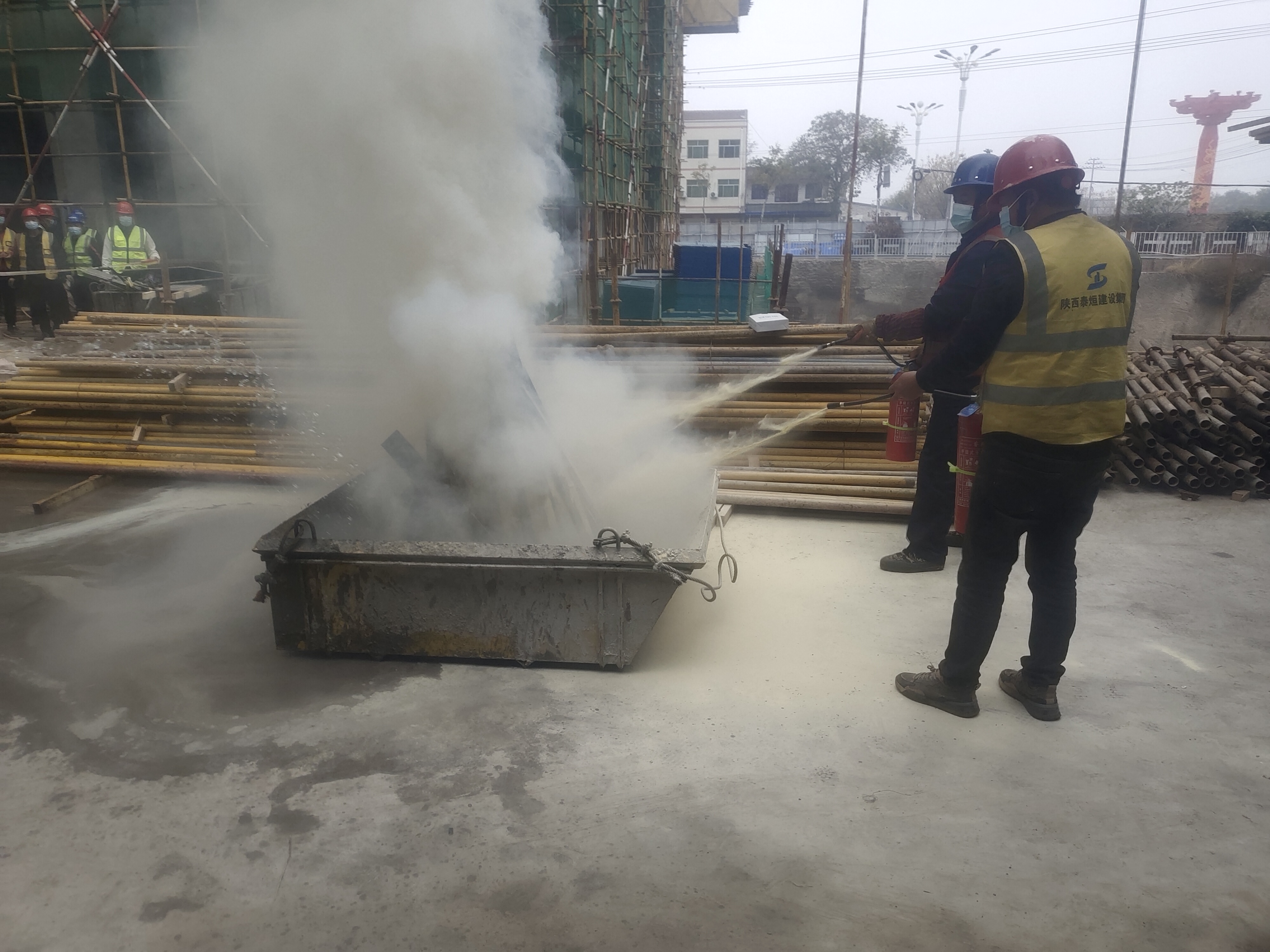 为认真贯彻“安全第一,预防为主、综合治理”的安全生产方针和“以人为本,防控结合”的安全生产原则,切实强化施工人员应对各类突发事件的处置能力,2022年11月24日上午,陕西天酬房地产开发有限公司蒲城项目部组织四季花城1#、2#商住综合楼及5A商业楼工程员工进行消防灭火应急救援演练。本次演练由天酬房地产公司与泰煊公司联合组织。