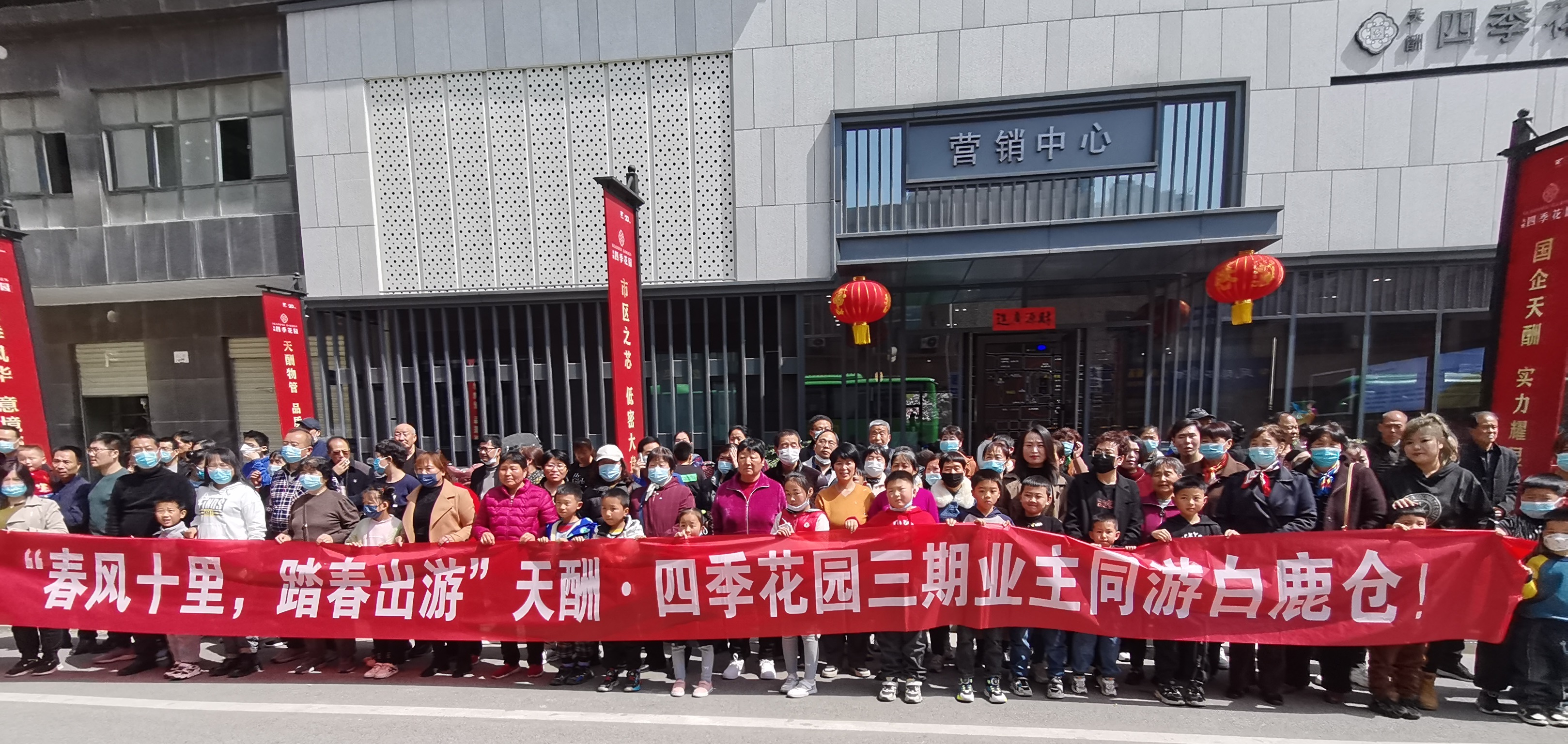 3月25日,陕外经贸集团天酬·四季花园三期举办“春风十里,踏春出游”活动,邀请业主们前往白鹿仓共赏民俗文化,共游春季美景,在专注品质筑家的同时,更注重丰富业主文化生活。本次活动共计150余人参与。