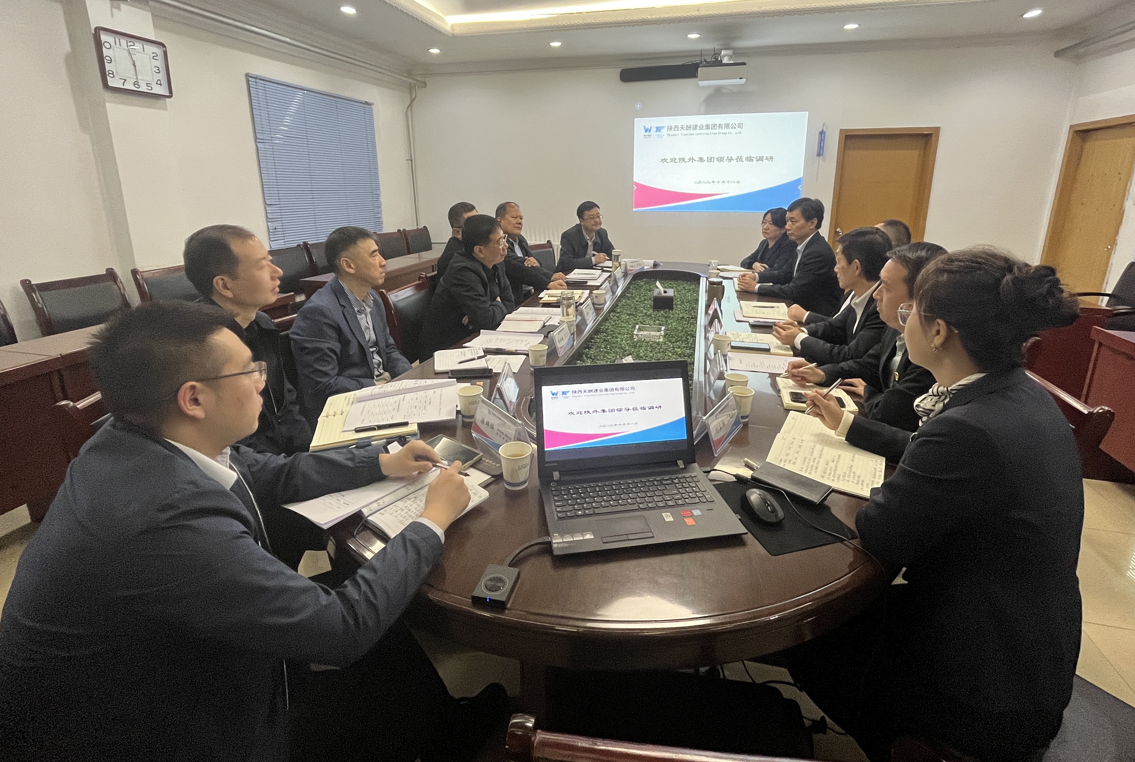 10月18日,陕外集团党委副书记、总经理梁晓龙一行到天酬建业公司调研督导稳增长工作并召开座谈会。