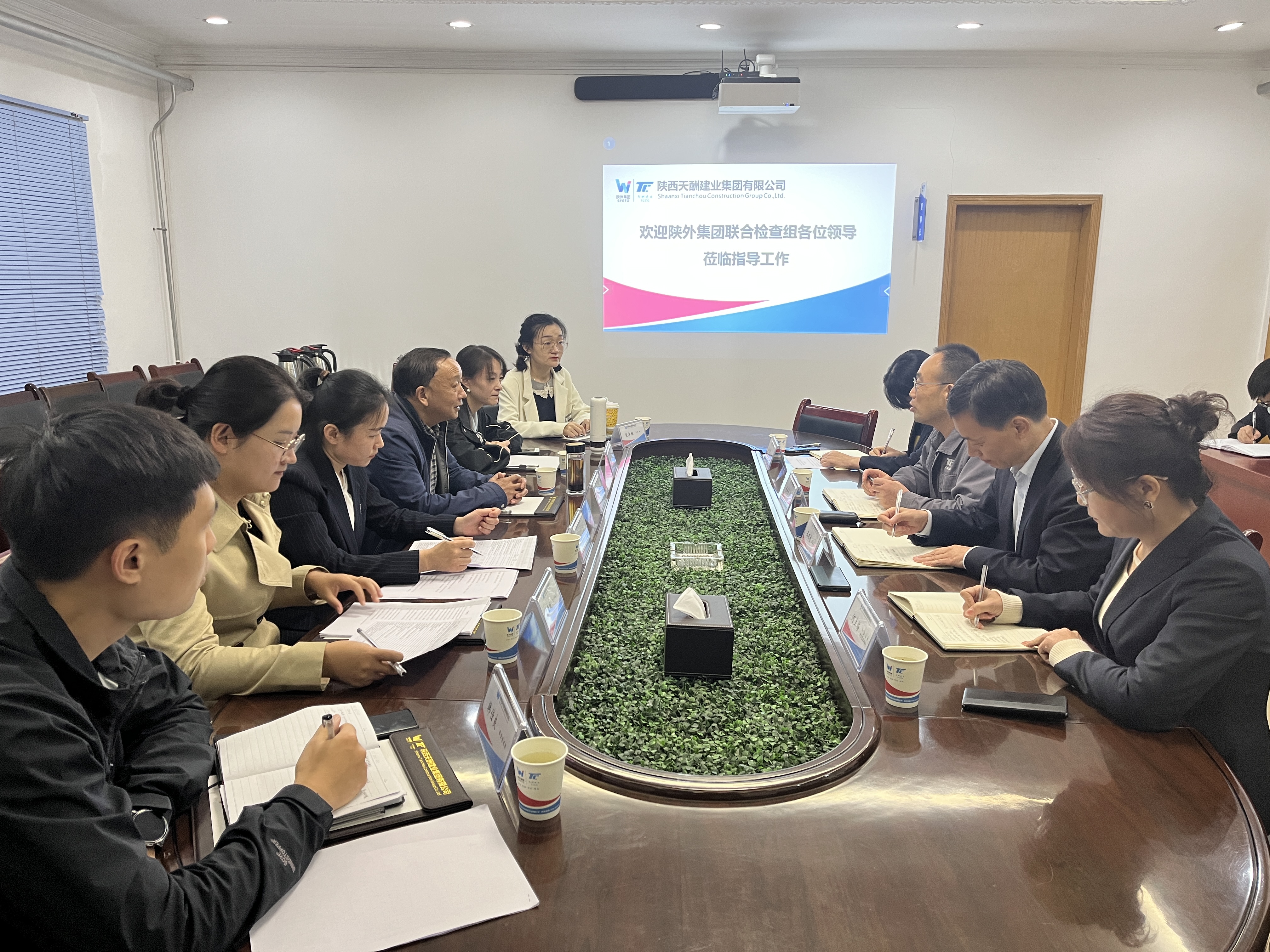 11月1日,陕外集团联合检查组到天酬建业公司检查指导工作。天酬建业公司主要领导及相关部门负责人参加会议。
