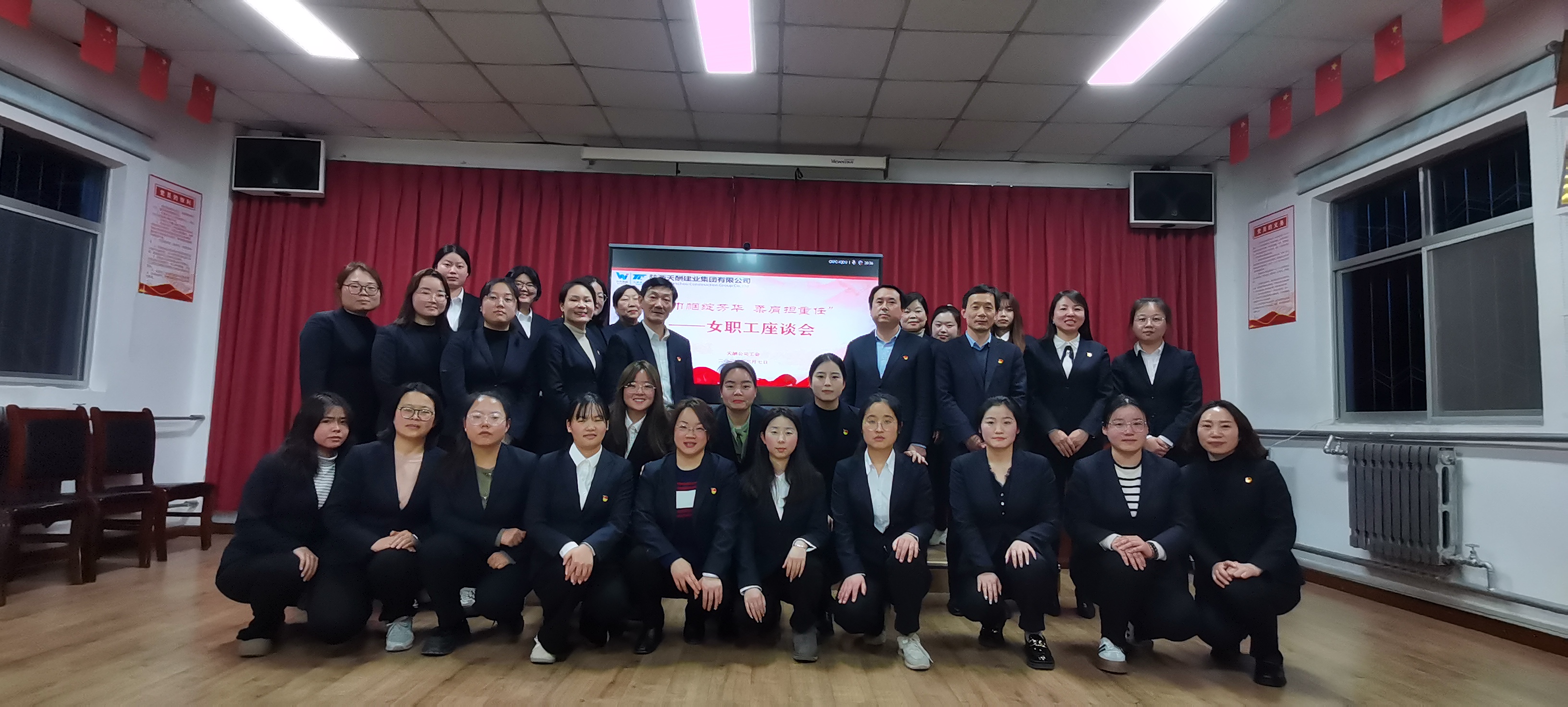 为庆祝第114个“三八”国际劳动妇女节,3月7日,陕外集团天酬建业公司召开“巾帼绽芳华 柔肩担重任”女职工座谈会暨巾帼标兵表彰大会,会议由女工委员鲁维主持,公司党支部副书记、总经理汪虹,副总经理王根利、陈肖锋,工会主席、综合管理部部长何立梅,女职工代表共30余人参加。